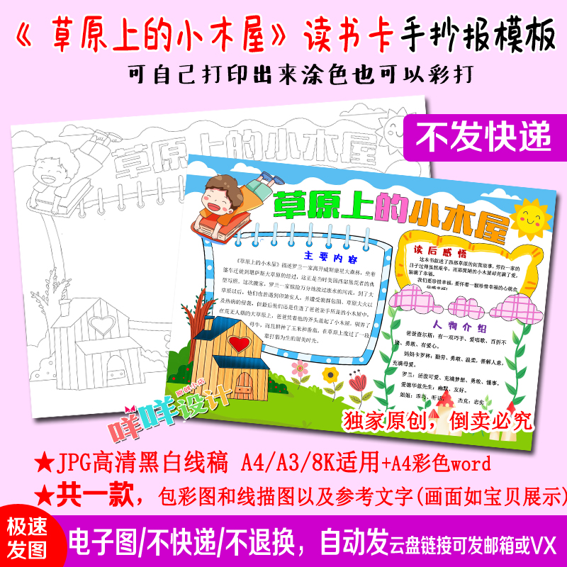 四年级课外阅读草原上的小木屋好书推荐卡描线涂色空白手抄报模板热门设计联盟服务商