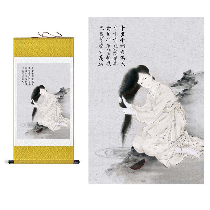 国画美女挂画聂小倩洗头图卷轴画倩女幽魂电影人物画丝绸画定制促热门设计联盟服务商