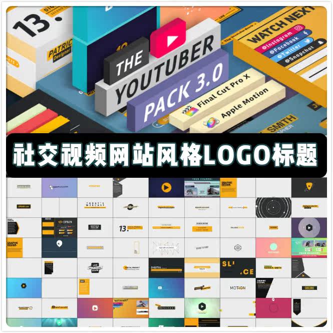 FCPX插件:社交视频网站风格LOGO标题字幕条转场侧边栏包装动画V3热门设计联盟服务商
