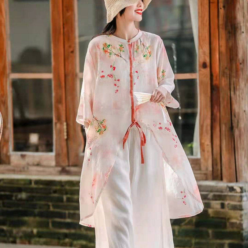 夏季文艺高端重工纯苎麻数码印花立领前短后长衬衫大码上衣女1801热门设计联盟服务商
