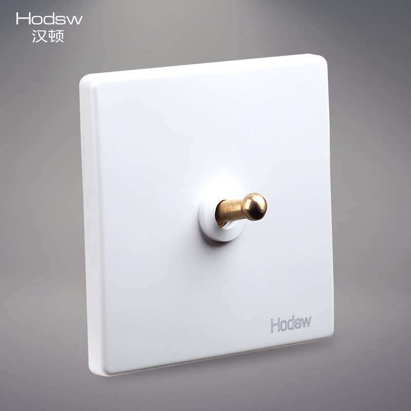 复古be酒店家装工装复古开关插座面板白色黄铜拨杆一开五多孔名宿热门设计联盟服务商