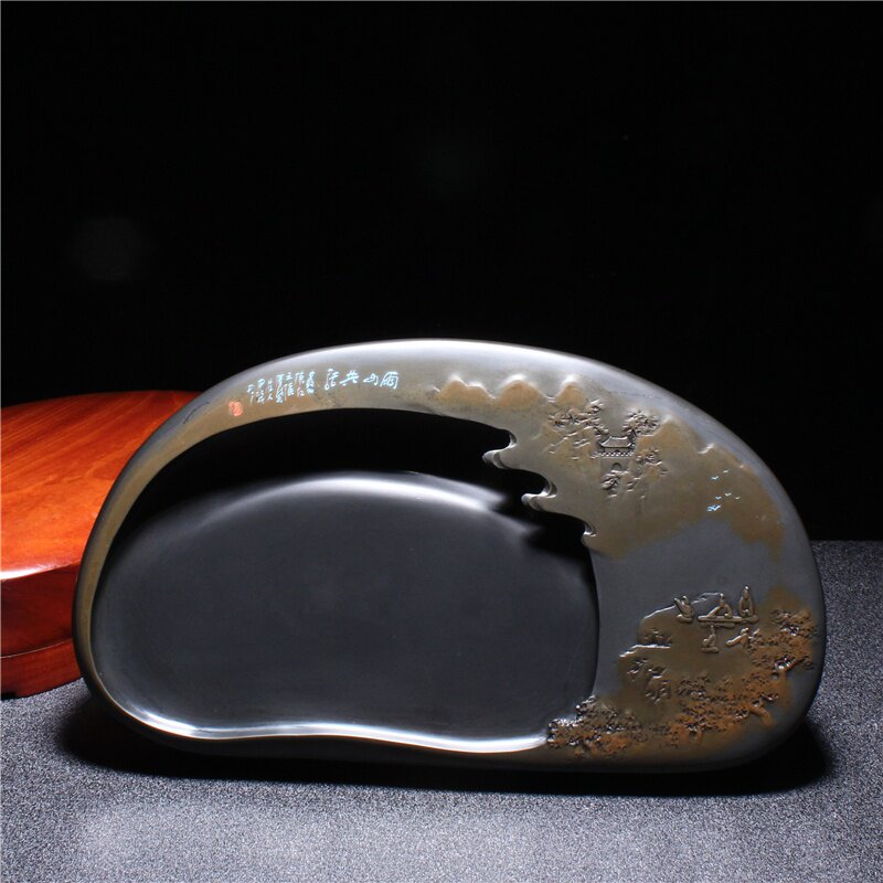 歙砚金晕籽料天然原石名师巴永成精品收藏歙砚砚台端砚文房摆件热门设计联盟服务商