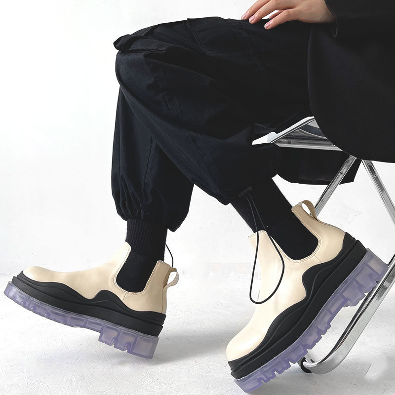 网红情侣bv切尔西靴男波浪底英伦风厚底靴女韩版中帮工装皮靴热门设计联盟服务商