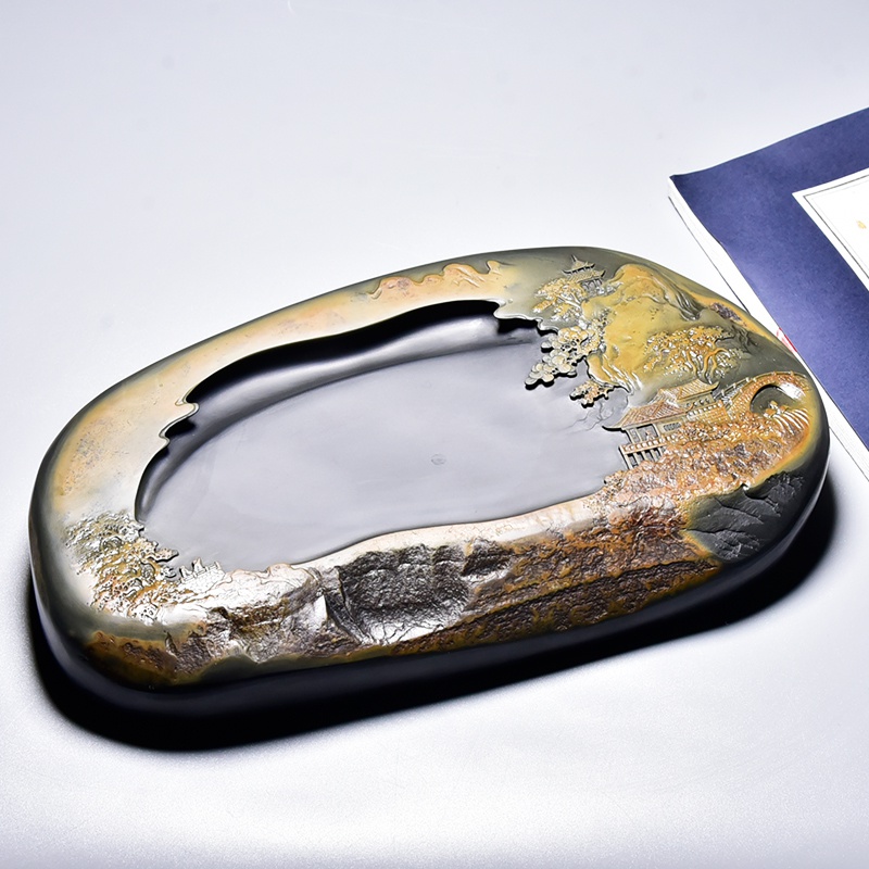 非遗工匠工艺美术师名师吴荣泉作品歙砚文房立体砚山水题材原石整热门设计联盟服务商