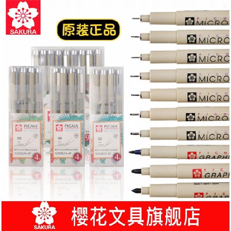 日本樱花文具旗舰店针管笔学生黑色动漫画设计防水勾线笔手绘套装热门设计联盟服务商