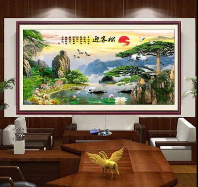 黄山迎客松墙画装饰画客厅沙发电视墙背景墙画山水风景画自粘贴。热门设计联盟服务商