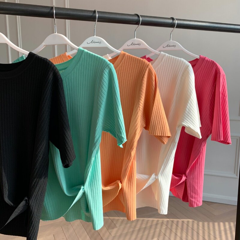 游鹿鹿服饰女士上衣慵懒舒适潮流简约洋气2021帖设计感针织短袖热门设计联盟服务商