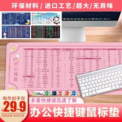 觅优品鼠标垫29快捷键鼠标垫涵盖各种办公软件超大无异味防水锁边热门设计联盟服务商