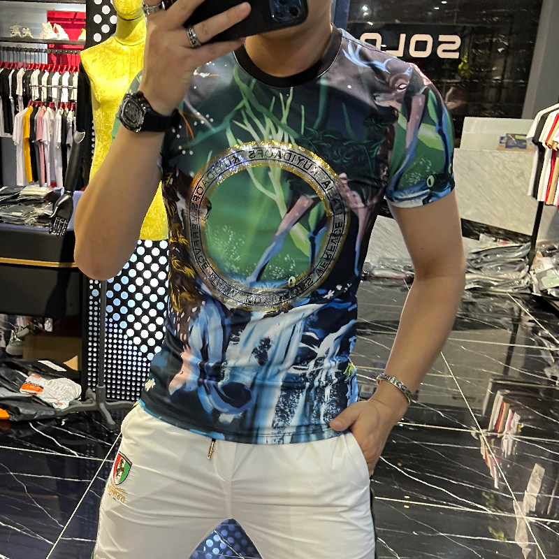 短袖男夏季欧洲站潮牌个性动物数码印花烫钻修身圆领青年休闲t恤热门设计联盟服务商
