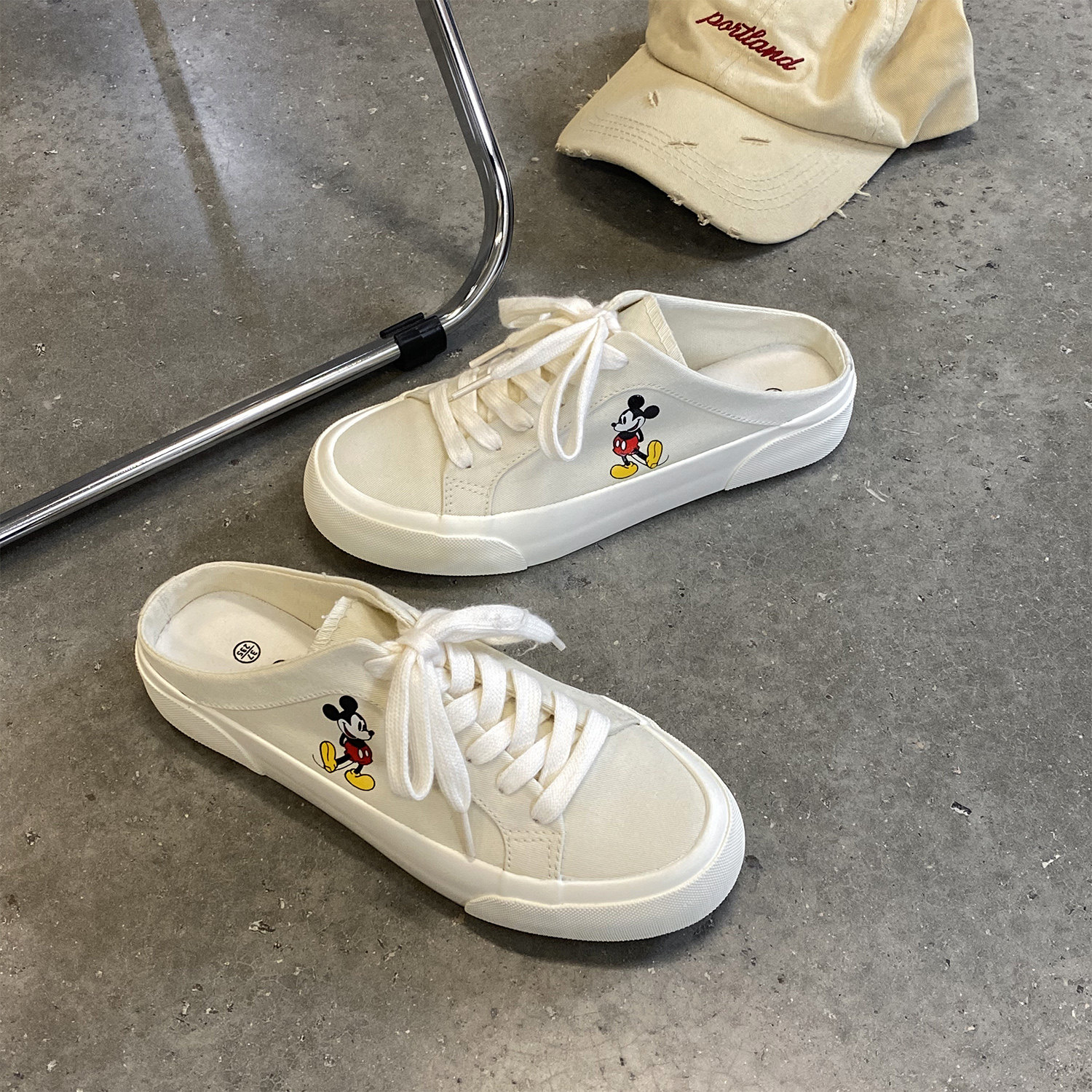 米色卡通半拖帆布鞋女ulzzang百搭半托女鞋2021新款学生韩版潮鞋热门设计联盟服务商