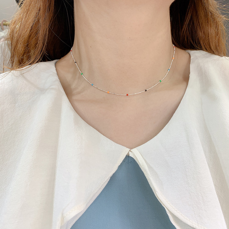 韩国东大门进口925银彩色彩虹银珠豆豆网红IU设计师ins项链锁骨链热门设计联盟服务商