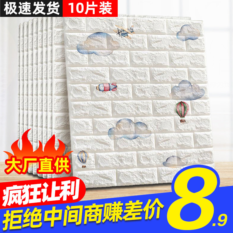 墙纸自粘儿童3d卧室背景墙面装饰房间壁纸网红泡沫砖卡通防撞贴纸热门设计联盟服务商