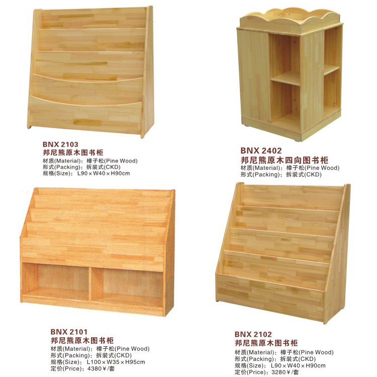 邦尼熊儿童原木图书报刊杂志柜幼儿园书籍漫画摆放樟子松拆装书架热门设计联盟服务商