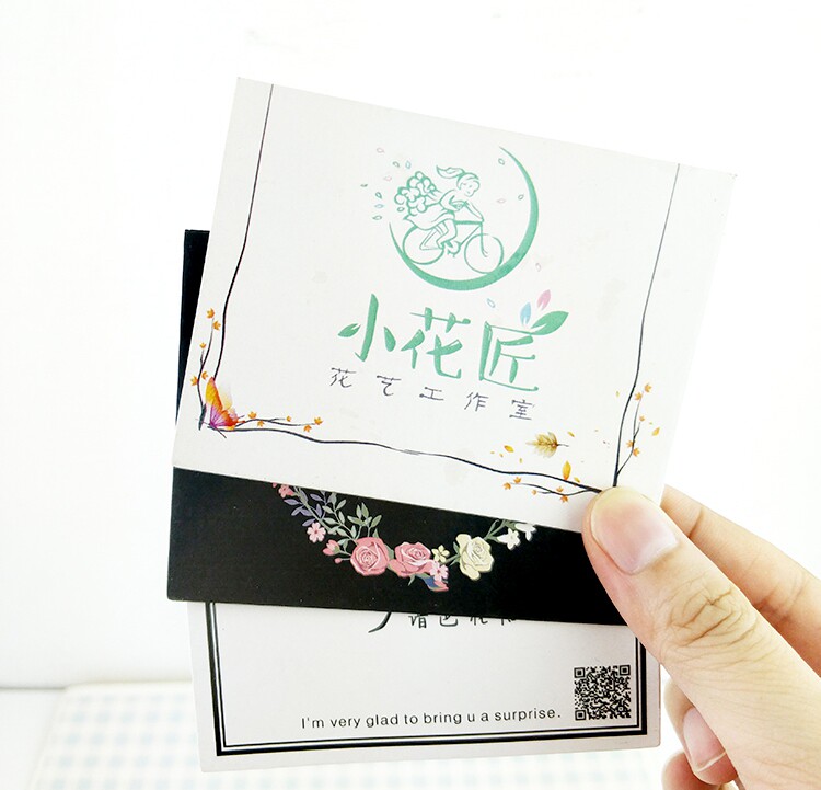 花店手绘折叠花篮烫金贺卡吊牌牛皮鲜花宣传卡片定制设计logo印刷热门设计联盟服务商