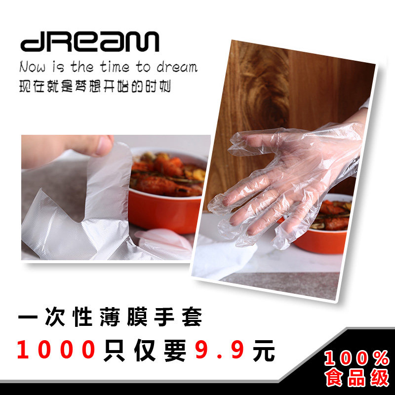 一次性手套塑料透明食品加厚餐饮薄膜家用女1000只装pvc手膜100只热门设计联盟服务商